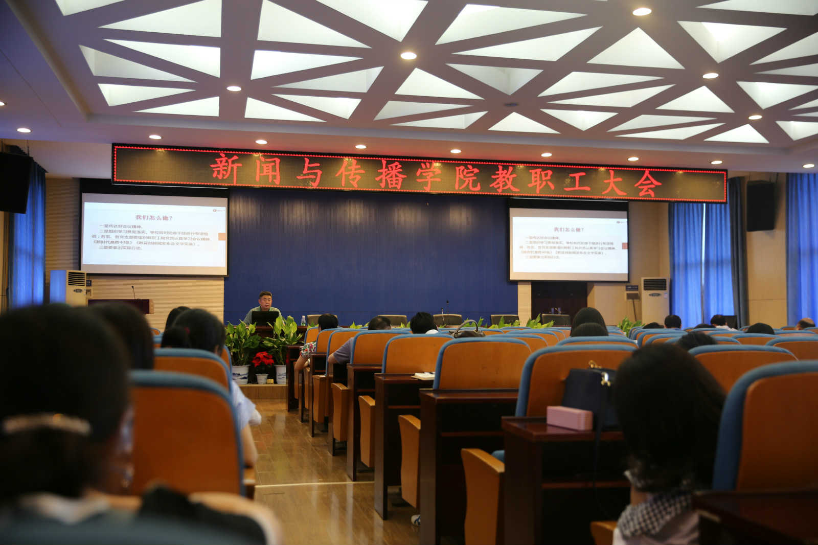 7月10日下午,新闻与传播学院在书山论坛召开教职工大会。会议由副院长闵素芬主持。