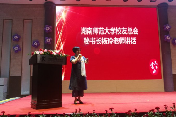 学校校友总会秘书长杨玲对新传院广东校友会的成立表示祝贺,介绍了学校发展的历程和目前的良好局面,希望校友们常回母校看看,与老师、同学们保持紧密联系。她还为校友们朗诵了《往日时光》,博得了校友阵阵掌声。