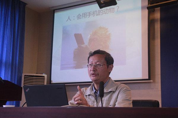 匡教授从理解新媒体开讲,指出有互动、终端是计算机的才能算新媒体。“而手机是具有通信功能的迷你型电脑”,匡教授甚至风趣地给人类下定义,来体现手机在现代社会的重要性,“会使用手机的动物叫做人”。匡教授认为,手机新媒体将成为主流,电脑屏幕代替了电视屏幕,而电脑屏幕又会被手机屏幕替代。