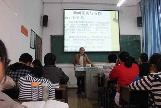 (通讯员 杨之行 张敏娴)我校党委副书记蒋冀骋教授曾这样称赞一位记者“一片丹心,一双慧眼,一支神笔”。这位让蒋书记高度赞誉的记者,也是湖南师大的校友。19日下午,他来到了我院做客,为我院新闻专业学生做了一场题为“记者生涯与中国梦”的讲座。