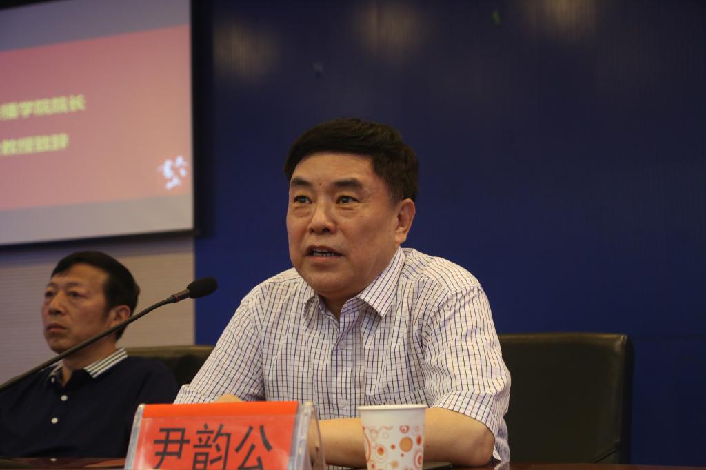 院长尹韵公致辞。他为19级新生提出了三点建议:一是把国家民族大义放在第一位,强调国家利益与民族利益的第一性;二是学会辩证看问题,注重理论与实际结合;三是勤奋学习,多读原著,为国家、为民族为社会服务,并预祝同学们圆满完成大学生活。