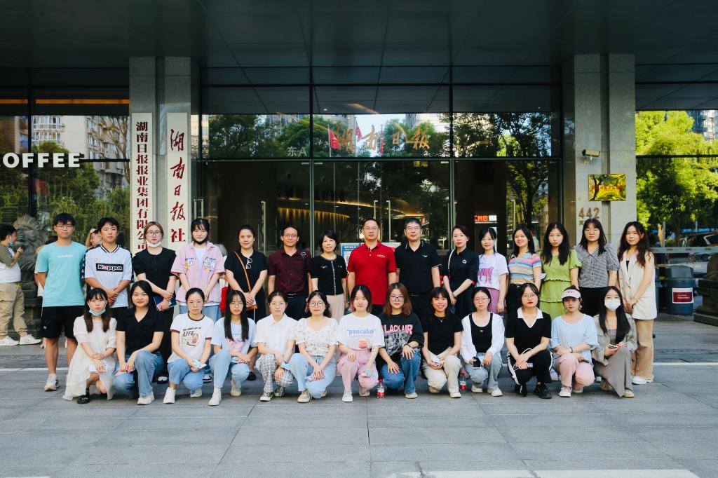 下午,沈贤岚一行到达湖南日报报业集团,参观了湖南日报报史馆,并前往湖南日报、三湘都市报、新湖南、华声在线等媒体办公区看望实习生。沈贤岚一行详细询问了实习生们的工作生活情况,表示学院高度重视学生的实习工作,希望实习生们在认真做好疫情防护的基础上,团结友爱、互帮互助、珍惜机会、认真工作、习而有得,在实践中检验所学、在实践中积累新知,学院与实习单位将一如既往地为大家排忧解难,积极为同学们提供益于成长的实习环境。在场实习生各自汇报了工作、生活情况,实习生邹紫仪表示:“见到学院老师,就像见到了家人,很亲切,很感动,感受到了来自学院的温暖和关怀,我和同学们将牢记老师们的嘱托,好好工作,不忘初心”。随后,在会议室,沈贤岚一行与湖南日报报业集团公司党组成员、副总编辑沈德良等进行了交流座谈,实习生代表19级新闻班李嘉圃同学作了实习工作汇报。