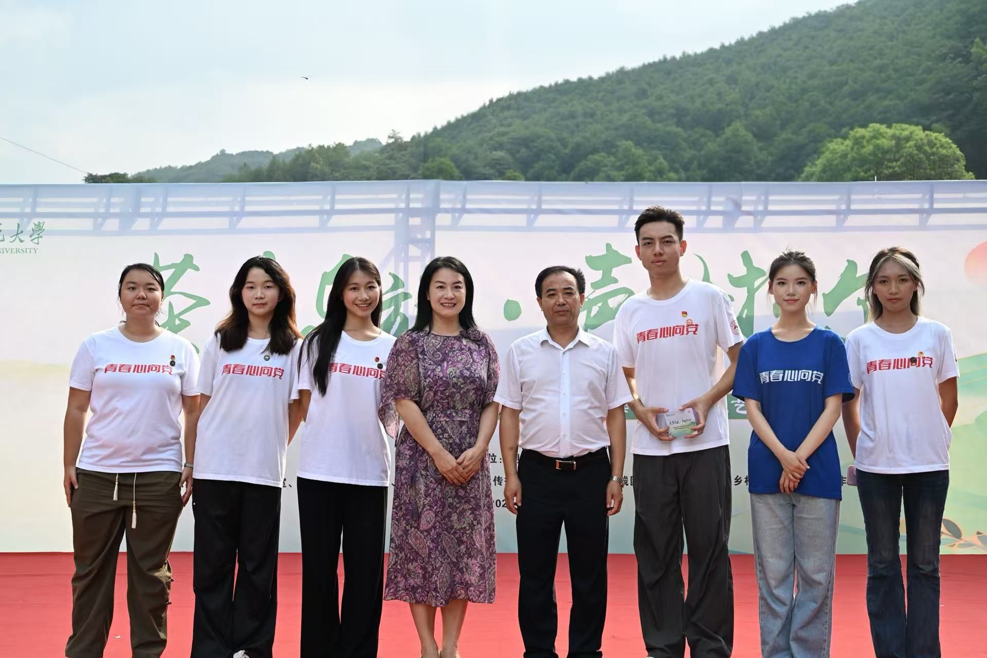在实地走访与调研中,王胜章书记一行听取了社会实践团工作汇报,详细了解团队在教育帮扶、文化传播、媒介助农等方面的阶段性成果。他指出,本次实践活动紧密结合学院传媒特色,学生在田野中发挥专业优势、在服务中锤炼本领,不仅为地方发展注入青春力量,也生动诠释了新时代大学生的责任与担当。