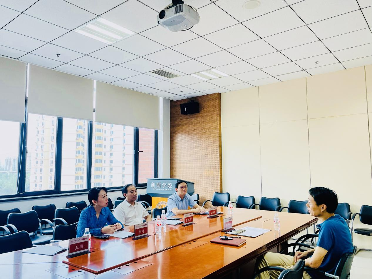7月28日,院党委书记王胜章率队到中国人民大学新闻学院进行考察,学习借鉴先进办学经验,探讨深化协同共建工作。副院长李琦、王海刚,部校共建办主任王倩参加学习考察。中国人民大学新闻学院党委书记张辉锋陪同学习考察并组织召开学习交流会。