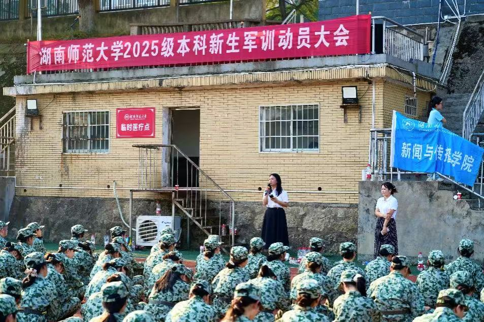 (通讯员 吴青霞)10月9日,伴随着嘹亮的口号声和庄重肃穆的升旗仪式,湖南师范大学新闻与传播学院2025级本科新生军训正式开启。新闻与传播学院党委副书记张小春,2025级新生辅导员老师欧阳丹玲、杨湘怡,全体小辅、教官及2025级全体新生参与开训仪式。