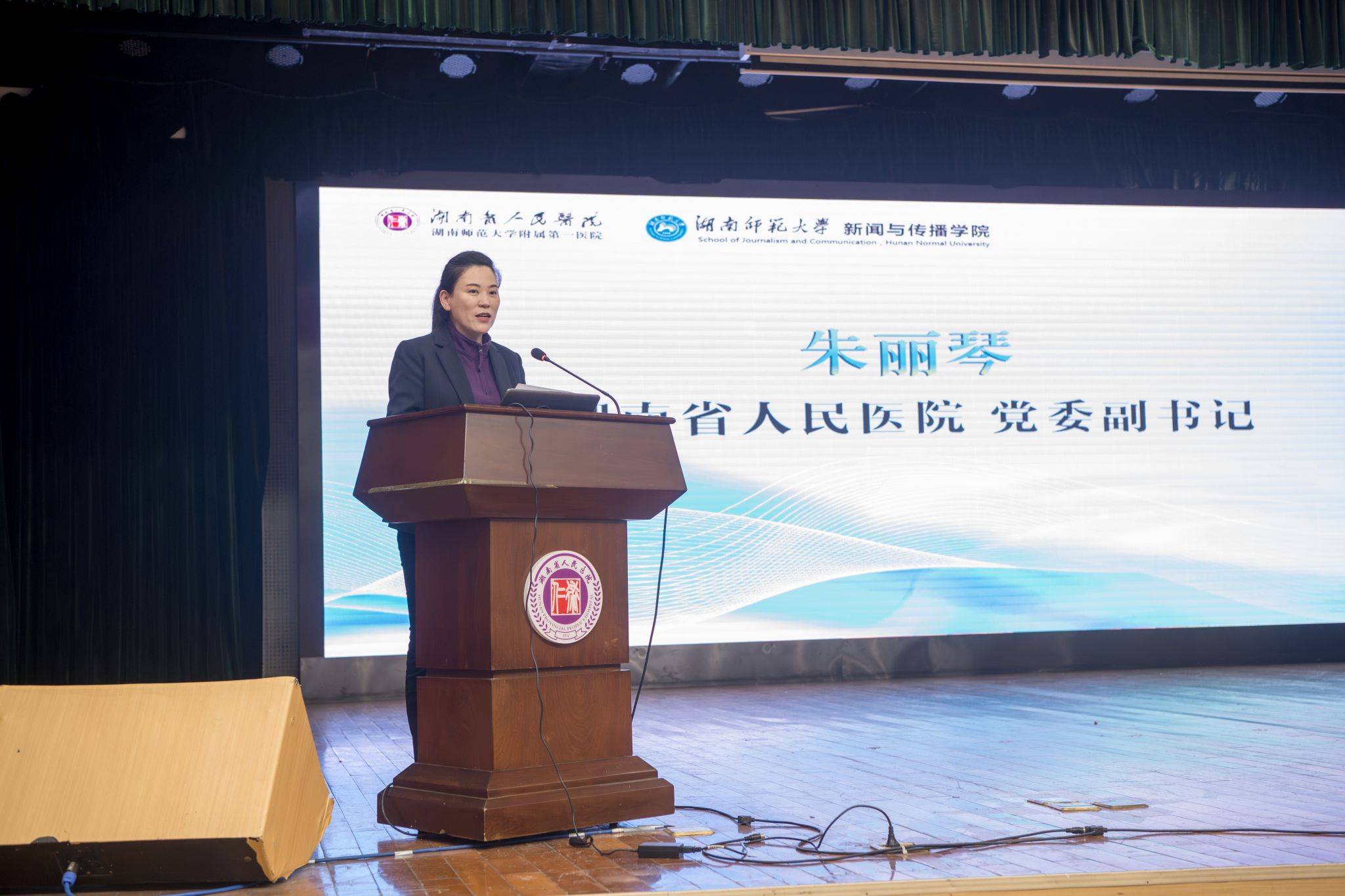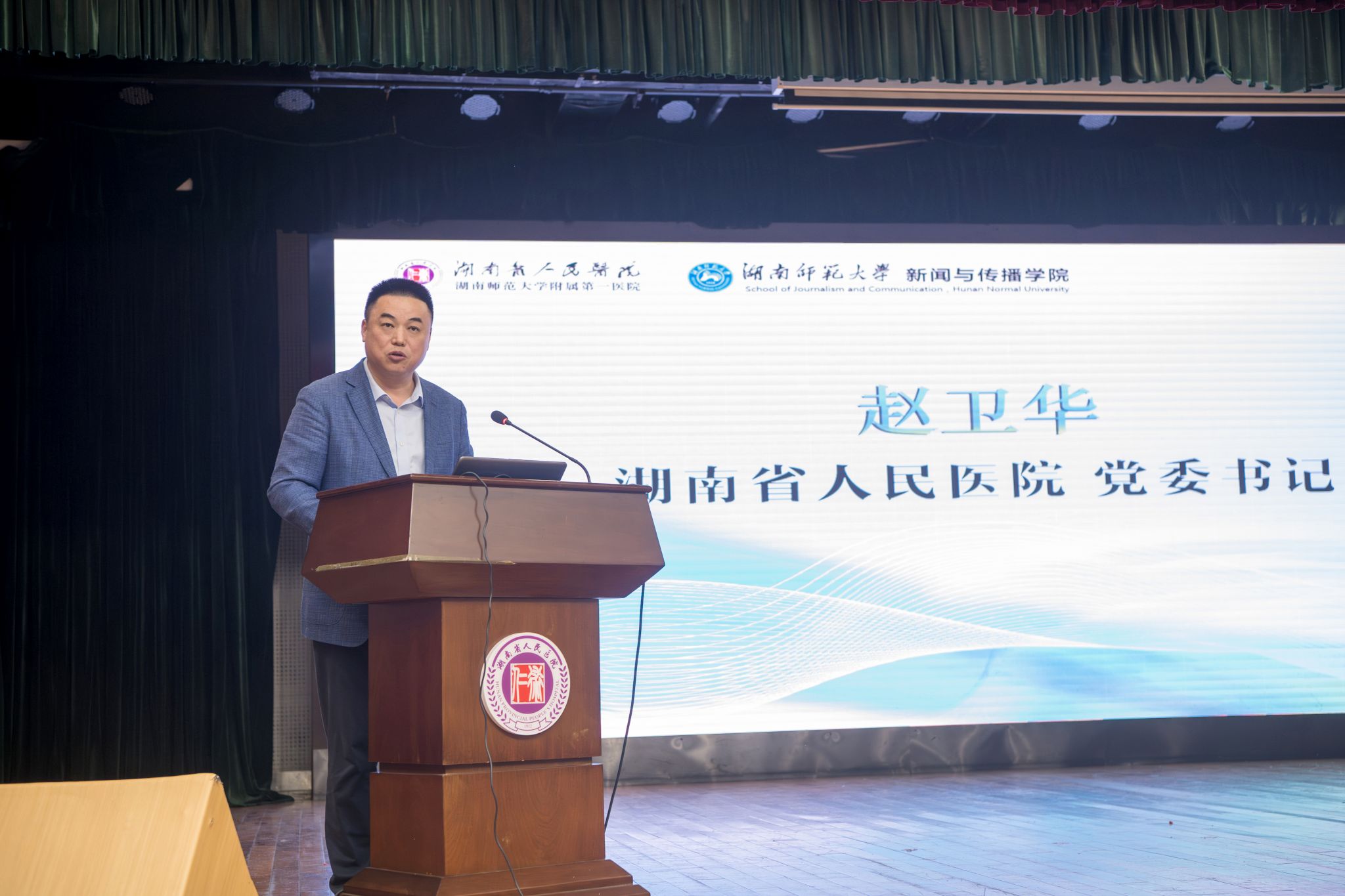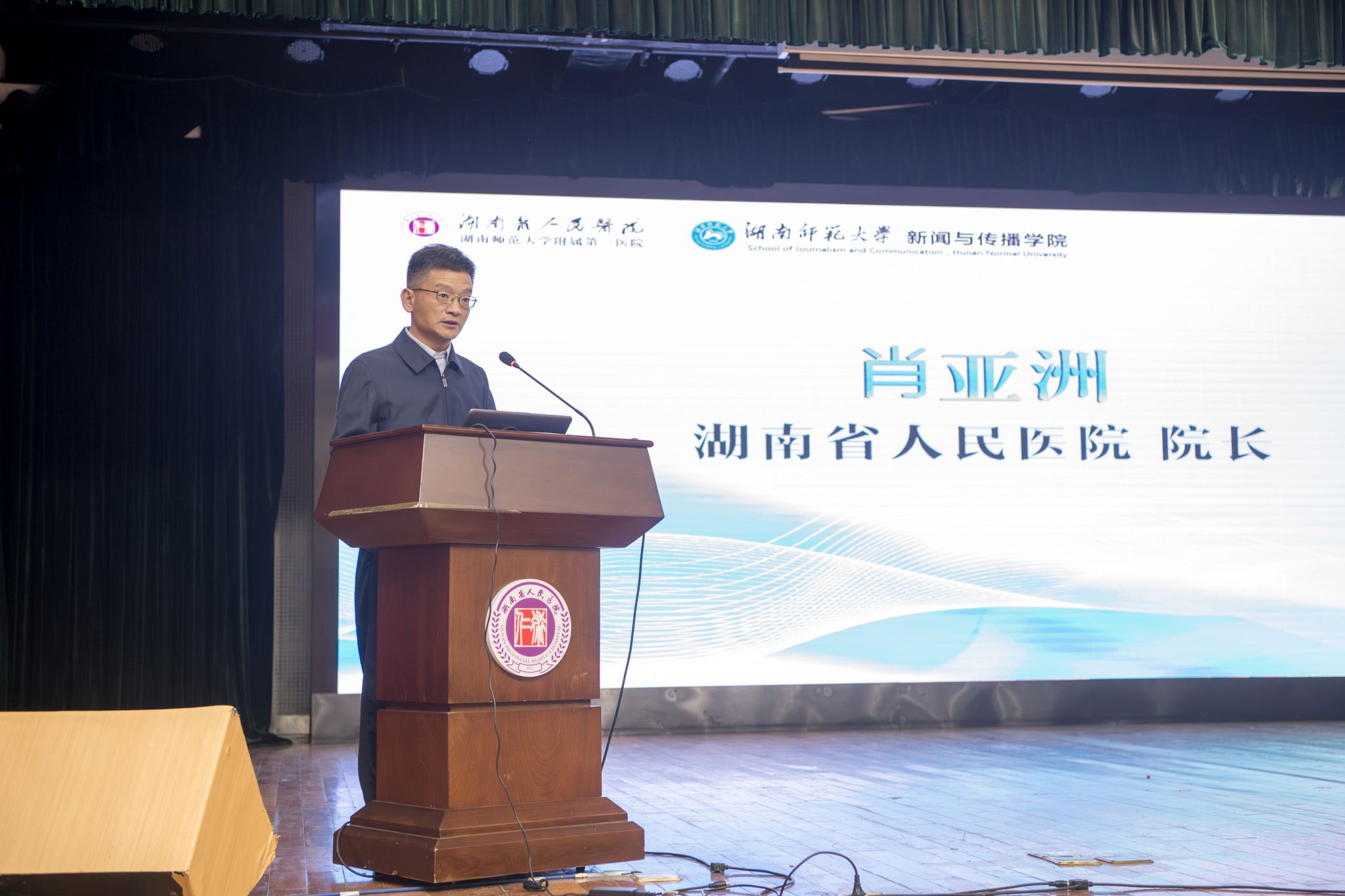 肖亚洲介绍了共建社会实践基地的相关情况,他表示,健康传播是践行‘健康中国’战略的重要支撑,湖南省人民医院作为省内医疗服务的标杆单位,拥有丰富的临床资源与厚重的人文积淀,而湖南师范大学新闻与传播学院在传播理论研究、人才培养及新媒体实践方面具备鲜明优势。此次基地共建,正是要搭建‘医疗资源+传播专业’的协同平台,未来双方将围绕人才联合培养、健康科普创作、科研项目合作等领域深化协作,共同探索医媒融合新路径。