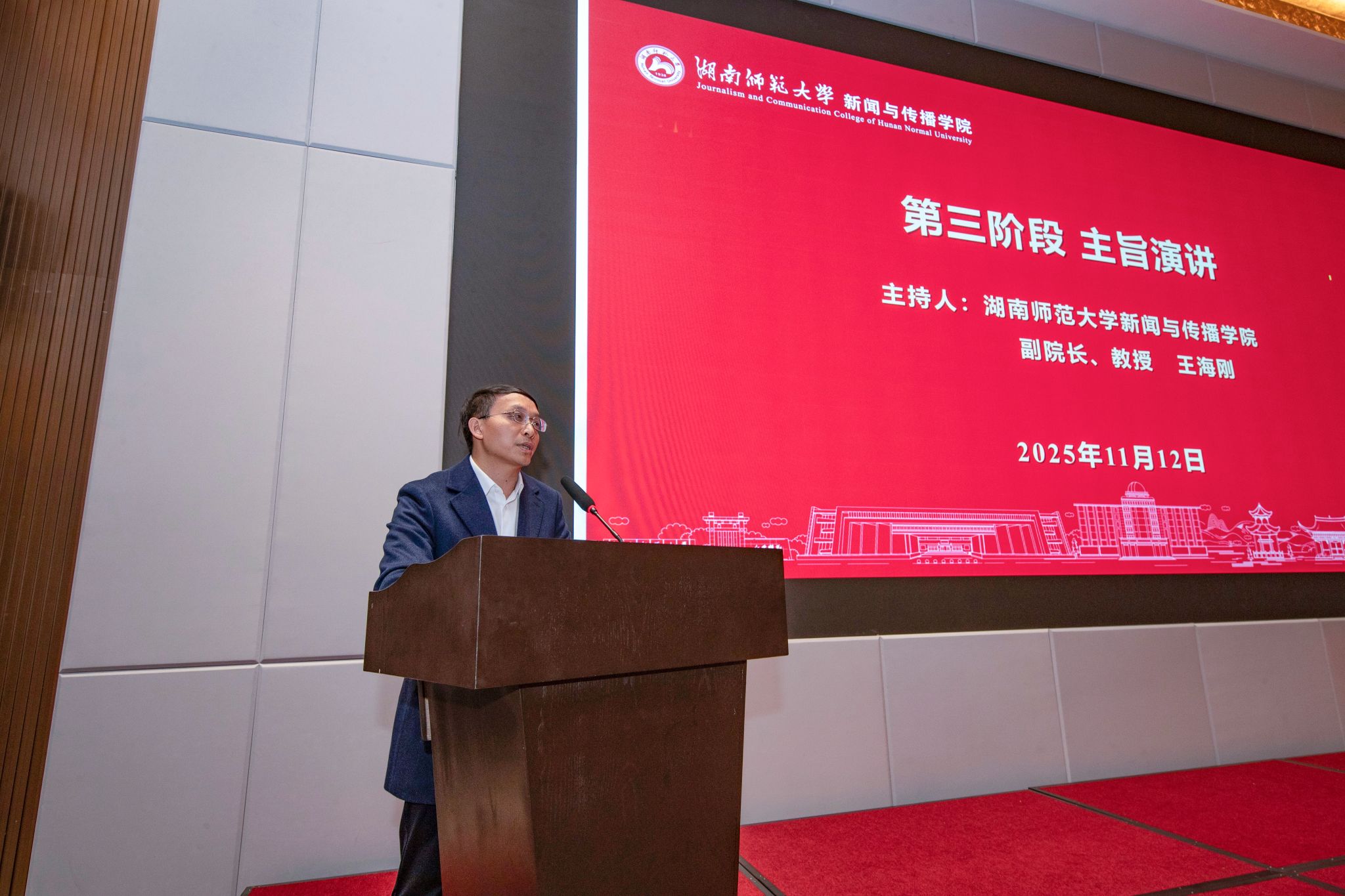 主旨演讲环节由湖南师范大学新闻与传播学院副院长王海刚教授主持。