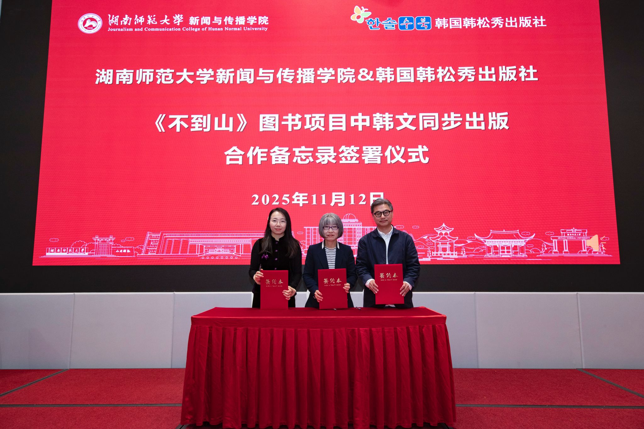 新闻与传播学院周霞教授与韩国韩松秀出版社签署《不到山》图书项目中韩文同步出版合作备忘录