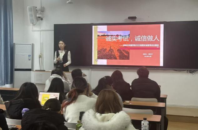 班会伊始,各年级辅导员结合近期考试安排,向同学们强调了诚信考试的重要性。他们指出,考试不仅是对学习成果的检验,更是对个人品德修养的考验,诚信应考是大学生践行社会主义核心价值观、恪守学术道德的基本要求。随后,辅导员们详细解读了《国家教育考试违规处理办法》《学校学生违纪处分规定》等相关规章制度,通过列举典型考试违纪作弊案例,深入剖析了违纪作弊行为的严重后果,包括取消考试成绩、记过处分、影响评优评先及毕业就业等,让同学们深刻认识到违纪作弊的危害性。
