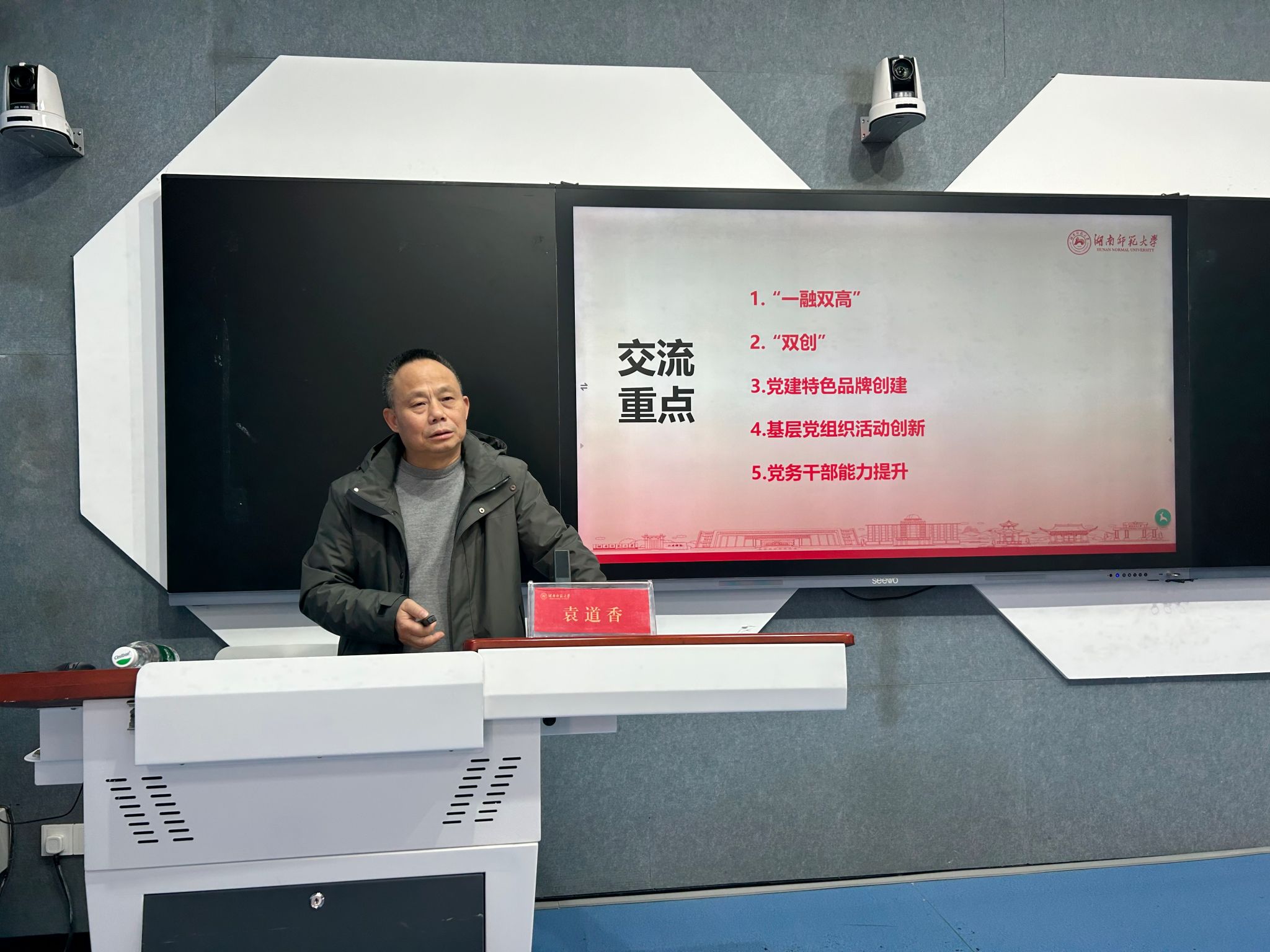 培训中,袁道香聚焦高校基层党建核心工作,围绕“一融双高”、党建“双创”、特色品牌创建、基层党组织活动创新、党务干部能力提升五大重点展开系统讲解。他深入阐释了“党建与事业发展深度融合,以高质量党建引领事业高质量发展”的内涵要求,解读了党建“双创”工作的申报培育、实施路径与重要意义,强调党建工作是高校办学评价的统领性指标,需以“创”促“建”打造示范样板。
