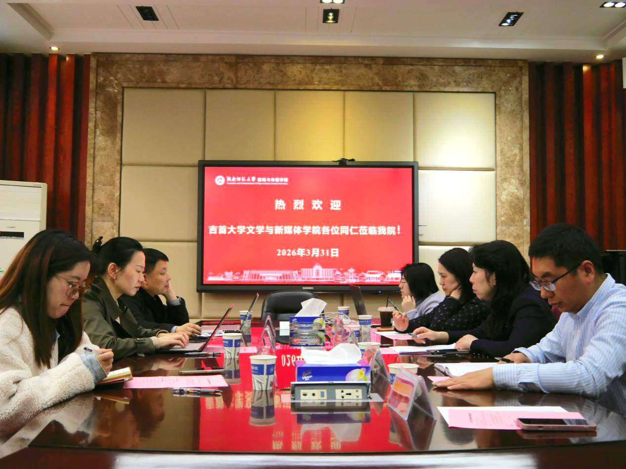(通讯员 邓珊珊)为深入交流数字化转型背景下新闻传播人才培养经验,凝聚校际合作共识,助力新闻传播教育高质量发展,3月31日下午,吉首大学文学与新媒体学院副院长罗琼、新闻学专业主任文新良、网络与新媒体专业副主任彭艳一行莅临我院,开展专题交流座谈。我院副院长李琦主持会议,网络与新媒体系主任段峰峰、新闻学系教授禹菲、网络与新媒体系教师陈婵、党办主任彭丽出席会议,双方围绕相关议题展开深入研讨。