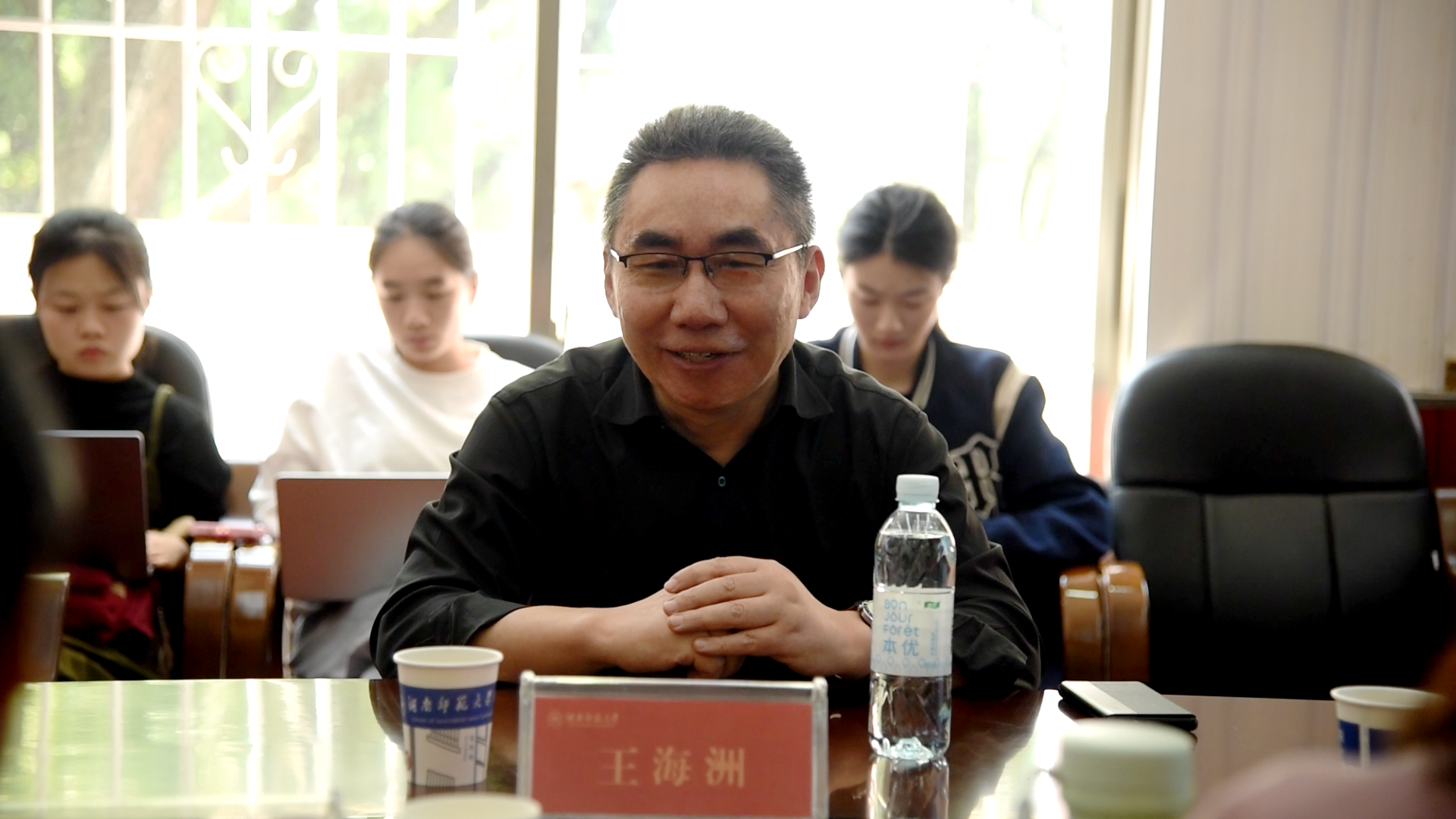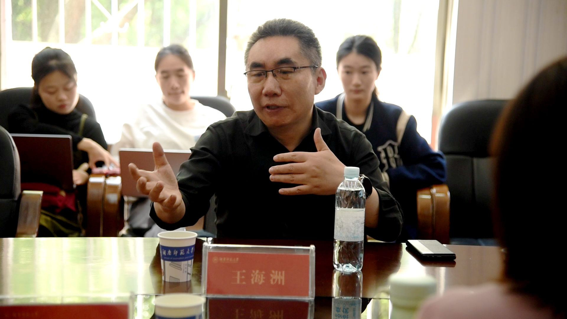 座谈会尾声,王海洲逐一解答在场师生的提问。整场座谈视野开阔,内容厚重,与会师生收获颇丰。