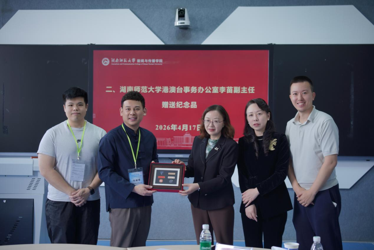 (通讯员 梁婧)4月17日上午,香港特别行政区政府教育局师生代表团到访湖南师范大学新闻与传播学院,开展为期半天的调研活动。香港特别行政区政府教育局高级课程发展主任陈继耀、计划主任郭子杰、项目主任陈俊贤,湖南师范大学港澳台事务办公室副主任李苗,招生与就业指导处辅导员游紫妍、欧阳楚睿,新闻与传播学院副院长李琦,学生工作办公室主任欧阳丹玲参加此次交流会。会议由视听传媒系主任岳璐主持。