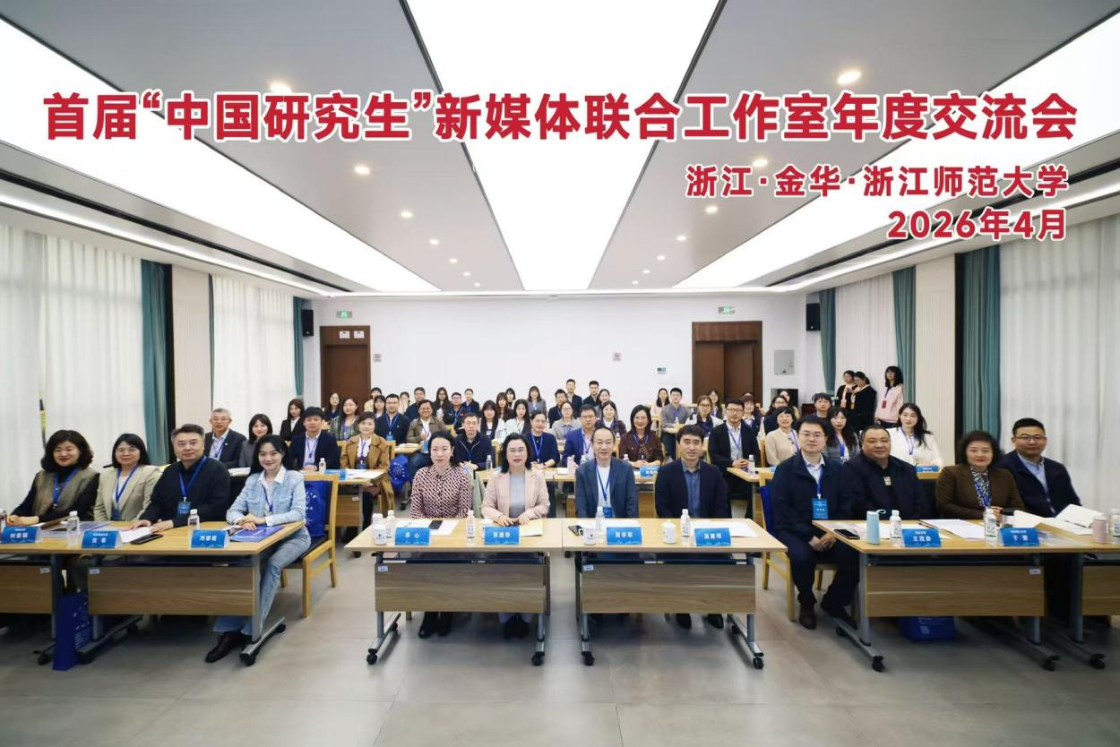 (通讯员 丁忠伟)4月23日,首届“中国研究生”新媒体联合工作室年度交流会在浙江师范大学召开,来自全国16所高校的研工部门负责人、新媒体指导教师及学生代表参会,围绕研究生新媒体内容创作、平台建设与思政引领等议题展开交流。本次会议由教育部学位中心研究生工作处主办,浙江师范大学承办,我校研究生院副院长苏涵琼、我院教师张磊与2024级戏剧与影视专业硕士研究生何巧玲应邀参会,分享我校在“中国研究生”新媒体创作的实践与思考。