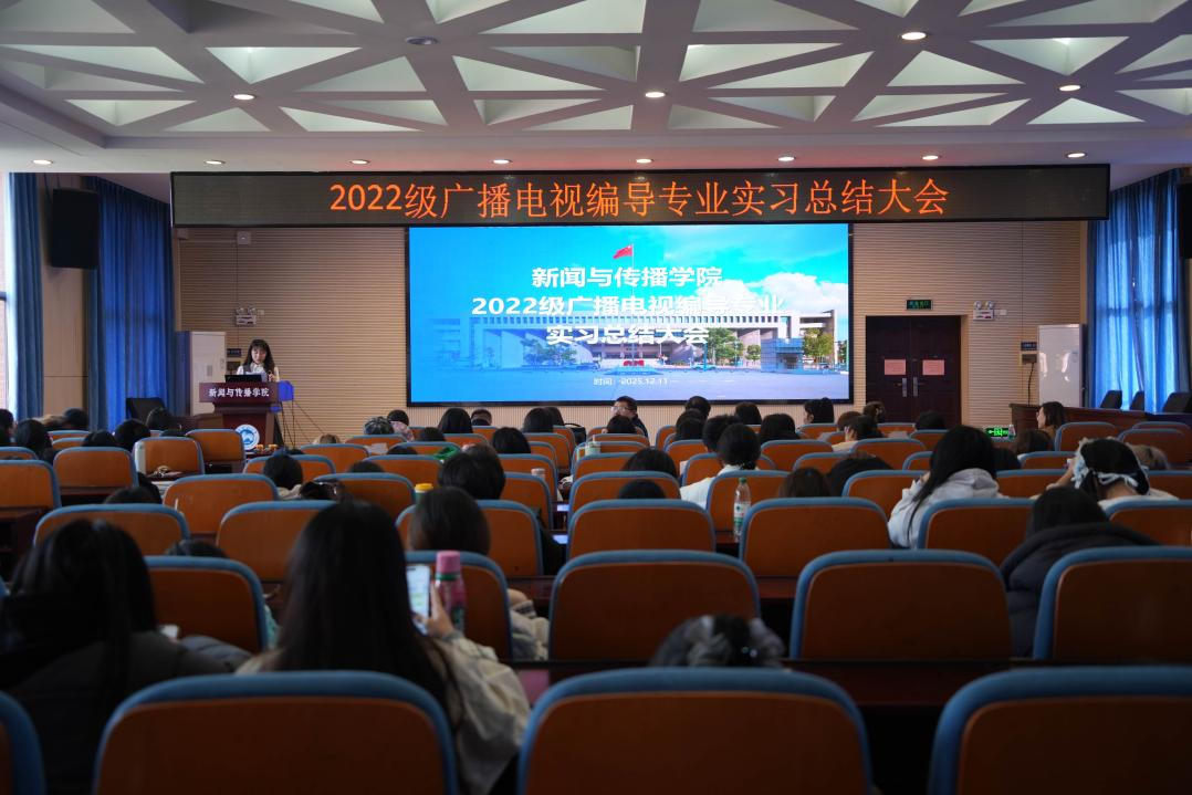 (通讯员曹语桐王紫怡)2025年12月11日上午,2022级广播电视编导专业实习总结大会在书山论坛召开。视听传媒系主任岳璐、专业教师刘彬彬、丁忠伟、石力夫、姚苏晟、林雅心、王灿、张译之出席会议。大会由2022级编导班班长郑琬霖主持,2022级、2023级、2024级编导专业全体学生参加。