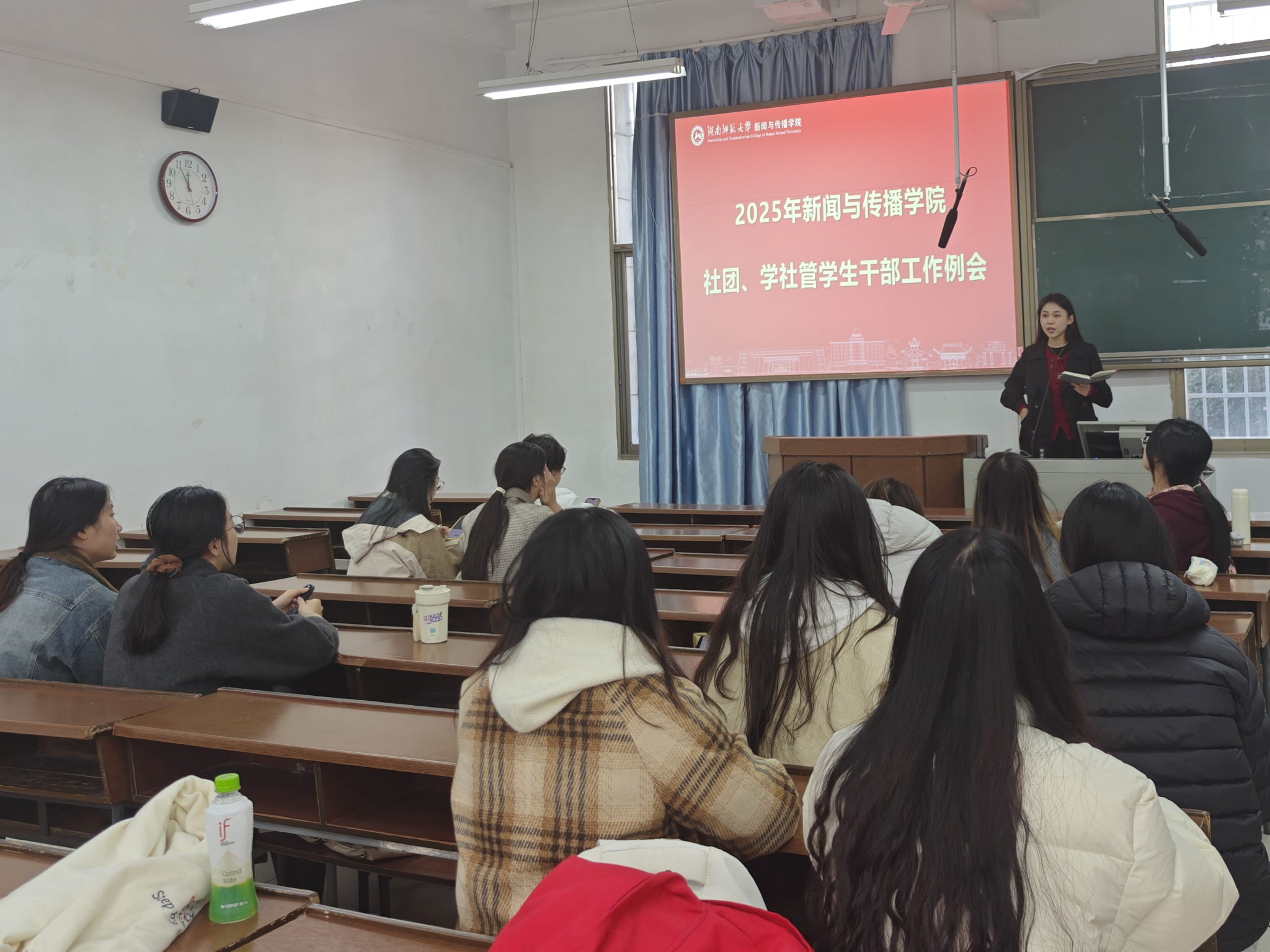 (通讯员 朱李沛沛 张耀丹)2025年11月25日中午,新闻与传播学院社团、学社管学生干部工作例会在本院101教室顺利举行。学生社团管理服务中心指导老师张江汀、中心各部门部长及各学生社团理事长参加本次会议。例会由院学社管中心主任张耀丹主持。